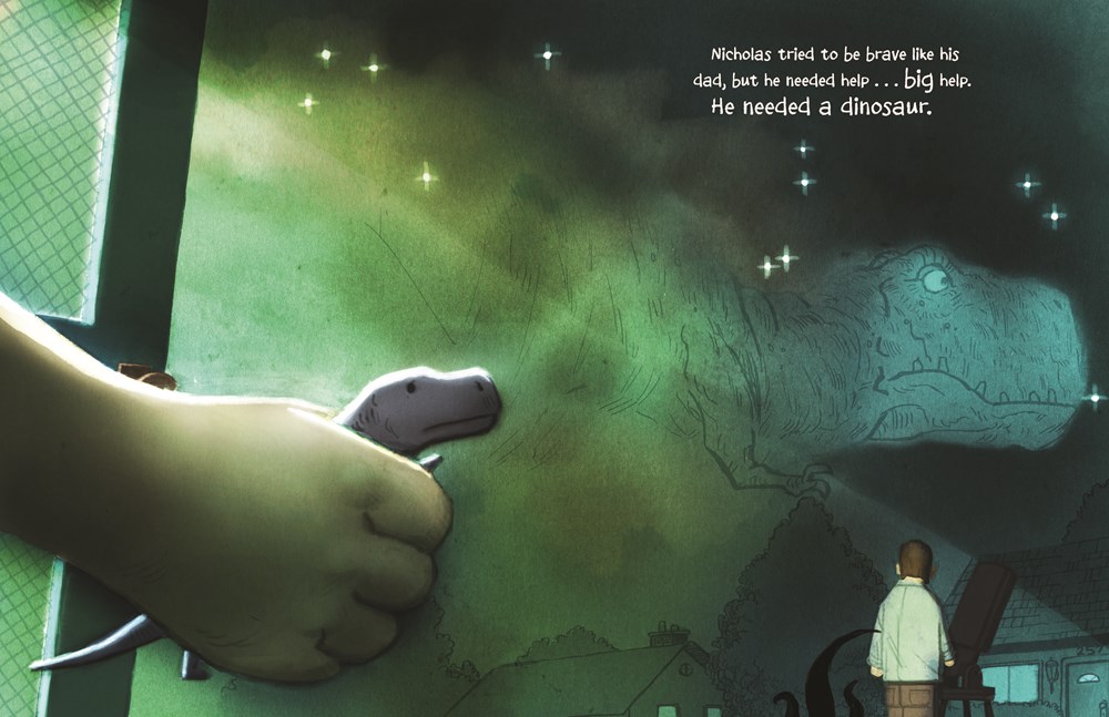 The only thing that helps Nicholas is his toy dinosaur; when he’s in Nicholas’ pocket Nicholas can do anything. He can climb walls, swim and face off against a huge goalie during soccer. Nicholas depends on his dinosaur for almost everything. So when Nicholas’ dinosaur goes missing, everything goes awry. It’s as if his bravery dries up completely.