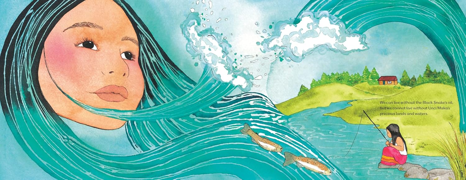 The story follows LaDonna and her granddaughter as they travel to and set up Sacred Stone Camp. Along the way, readers learn about the impact pipelines have on people and the ecosystems they depend on.