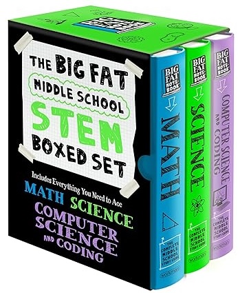 Up your middle-school math, science and computer science games The Big Fat Middle School Stem 3-Book Boxed Set from Workman Publishing.